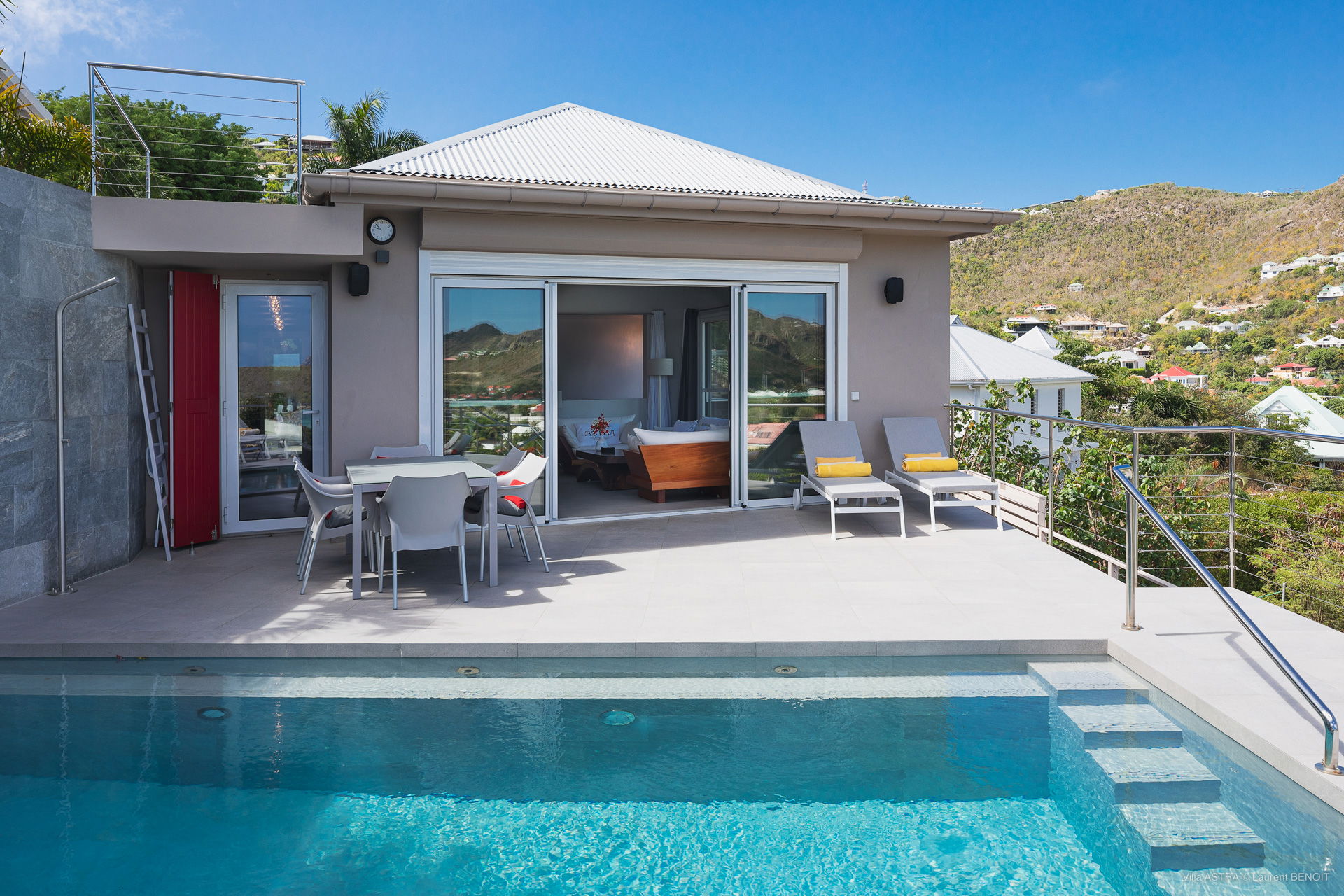 Villa Astra’s location is ideal. It is in the heart of St. Jean, close to the Eden Rock hotel and within walking distance of beautiful beaches, restaurants, and boutiques. Gustavia is just a few minutes away by car, but the villa is quiet and private. It has excellent views of St. Jean Bay, a wildlife reserve, and panoramic sunsets.