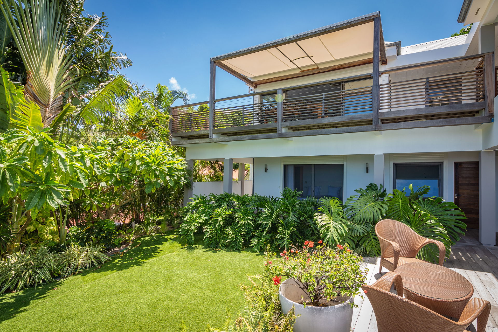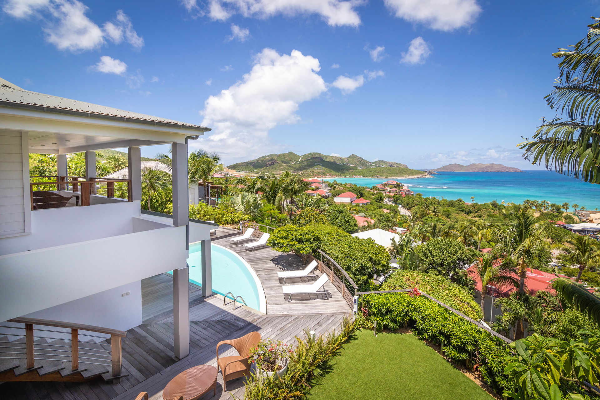 If you choose to venture out, Nikki Beach, St. Jean Beach and the shopping area are nearby. Or stay in and soak up that sunshine and those views. The main terrace has ample areas for sitting, dining and barbecue, along with plenty of chaises downstairs by the pool.